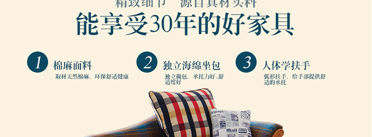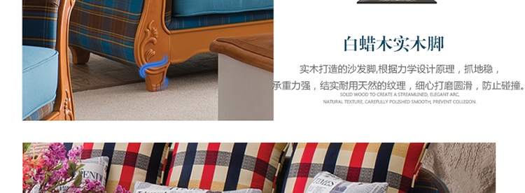 至美乡村布艺沙发组合田园风格卧室沙发客厅三人位沙发S8511