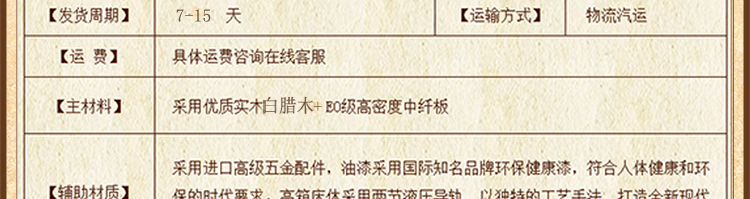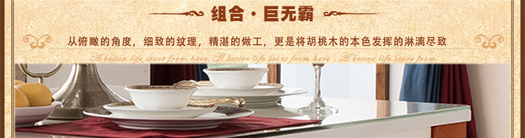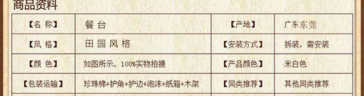 外围尺寸: M8201 餐台: 1400*850*750; M8222 餐柜: 1600*450*960; M8223 上架: 1530*315*995; Z7 餐椅: 450*480*910;