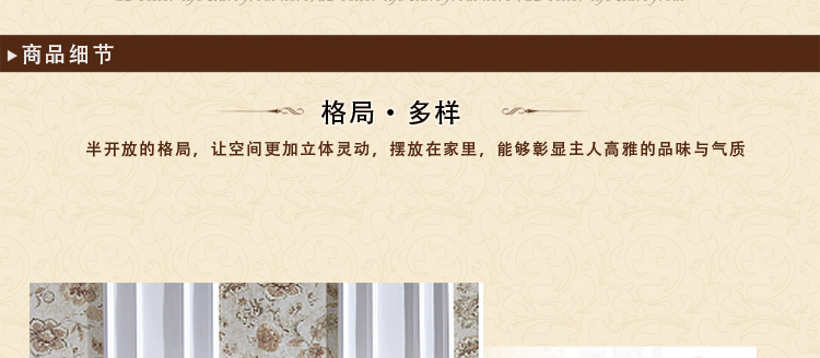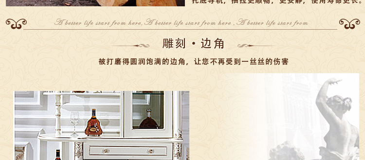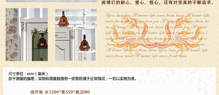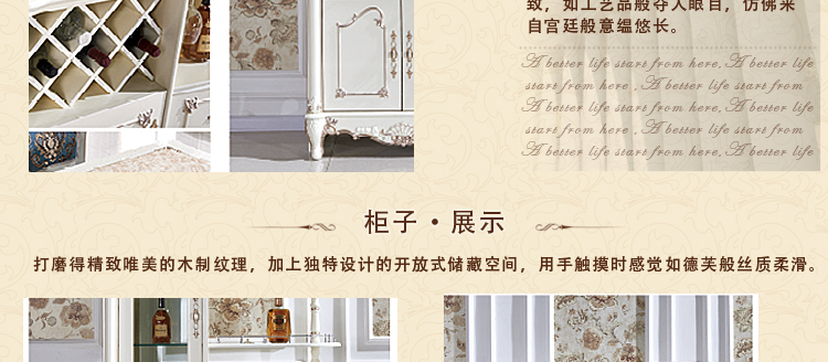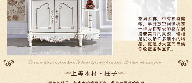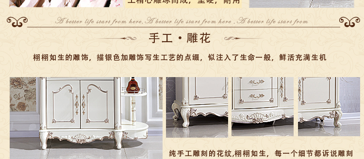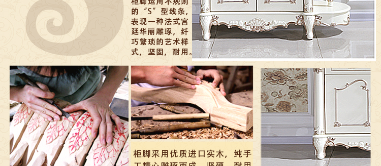 优质服务】专业客服竭诚服务;  【品质优异】消甲醛处理环保材质,稳固耐用;多处精巧花纹雕饰, 细致做工;精致锌合金拉手;【独特设计】专业环保油漆装饰,光滑优雅;摆放整齐;淡雅的象牙白焕发着典雅韵味;