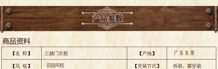 至美乡村田园风格三门衣柜 乡村风格大容量储物收纳衣柜D87-1