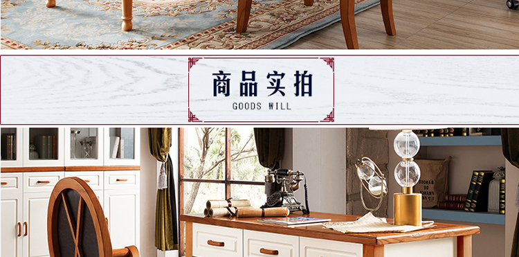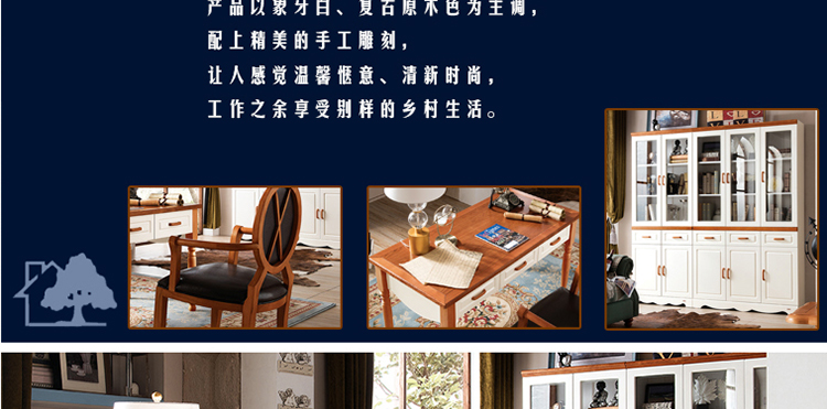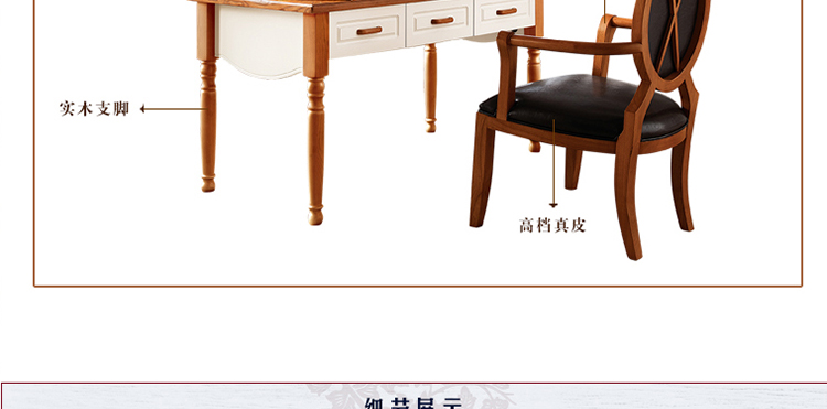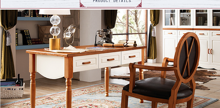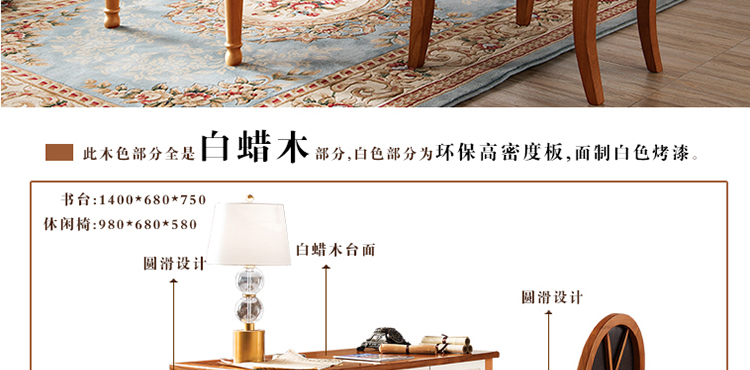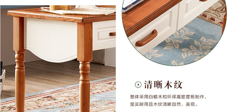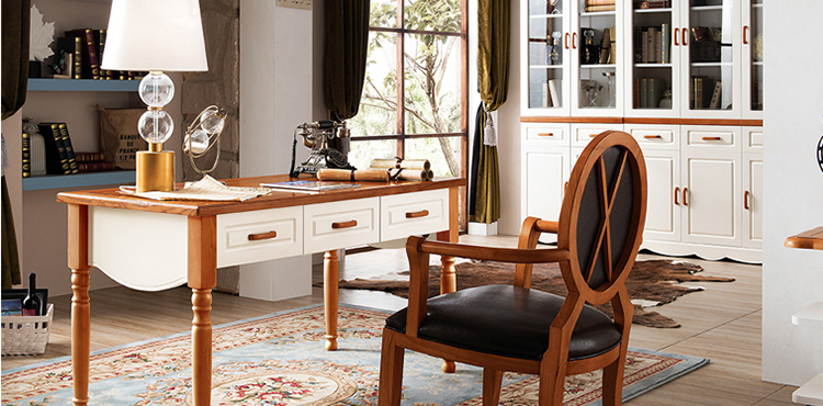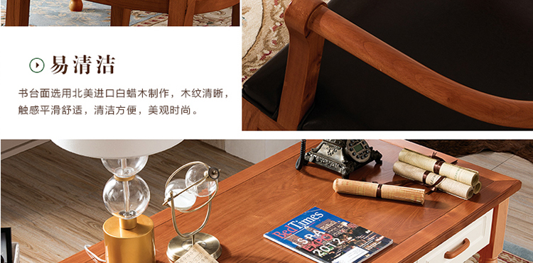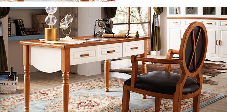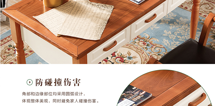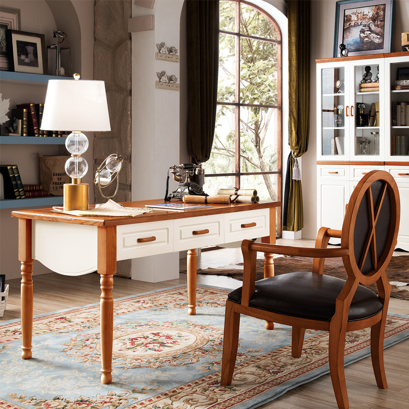 至美乡村书桌电脑桌格直角书台田园风格实木电脑台书椅组合H8300-2