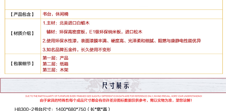 外围尺寸:H8300-2书台1400*680*750; T105休闲椅980*680*580