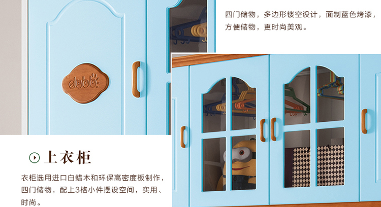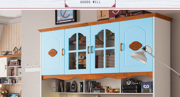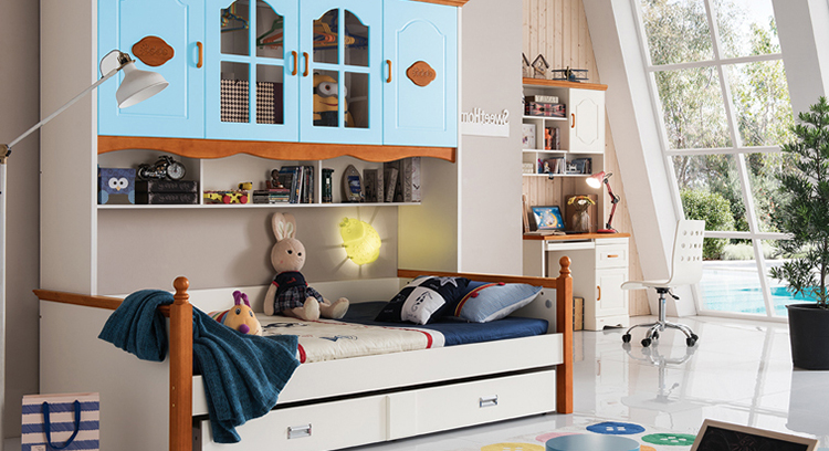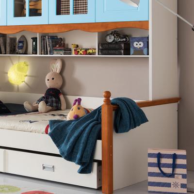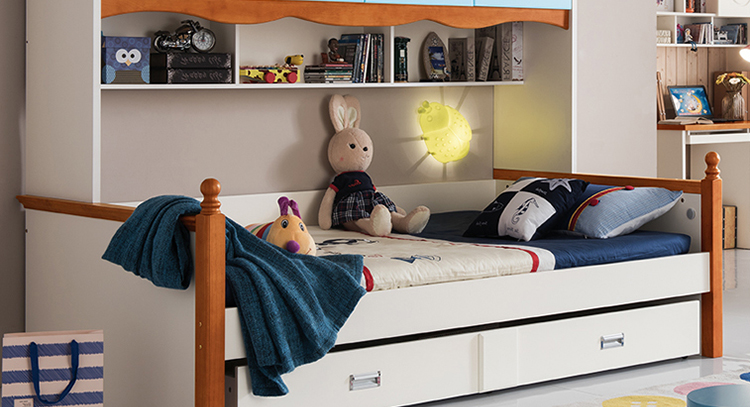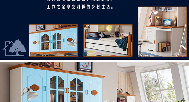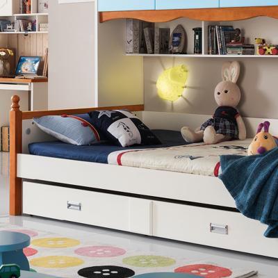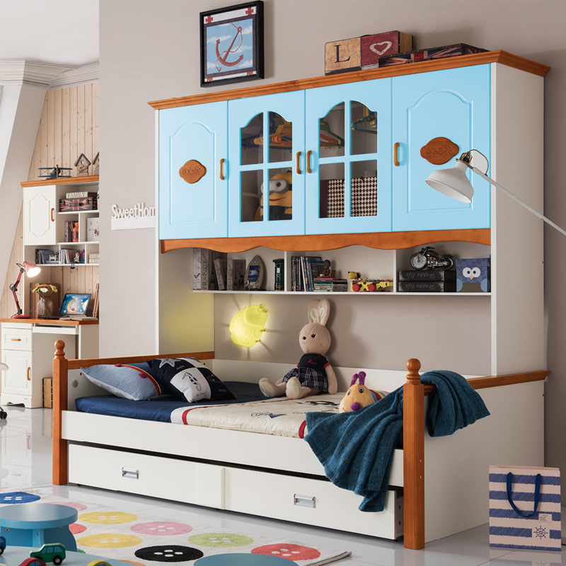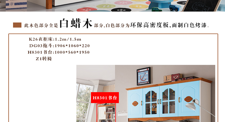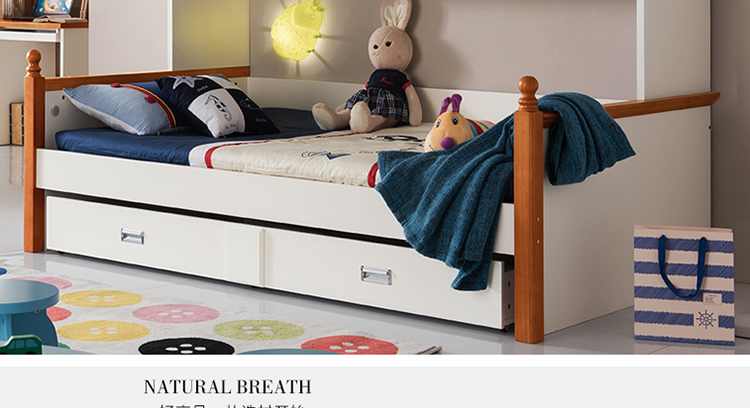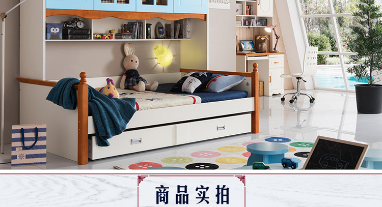 至美乡村田园风格白蜡木1.2米1.5米实木儿童床带拖斗储物柜床K26