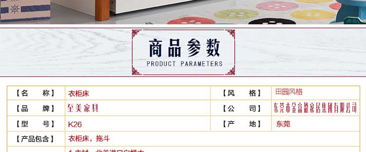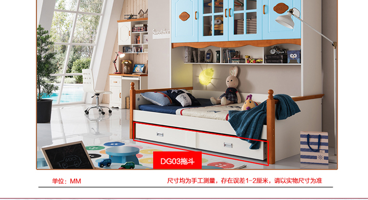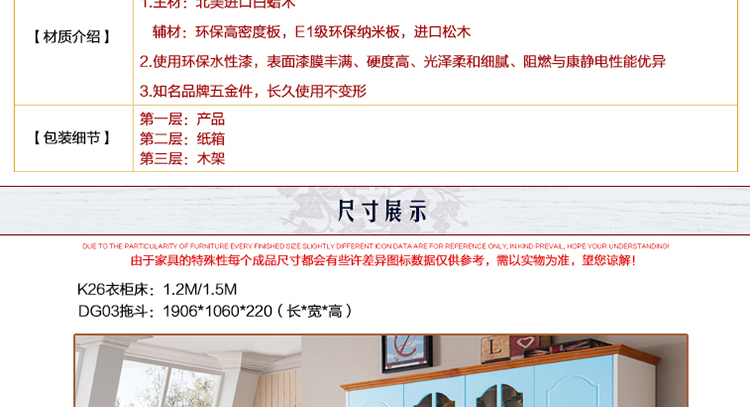 外围尺寸:K26衣柜床1.2m/1.5m;DG03拖斗1906*1060*220;