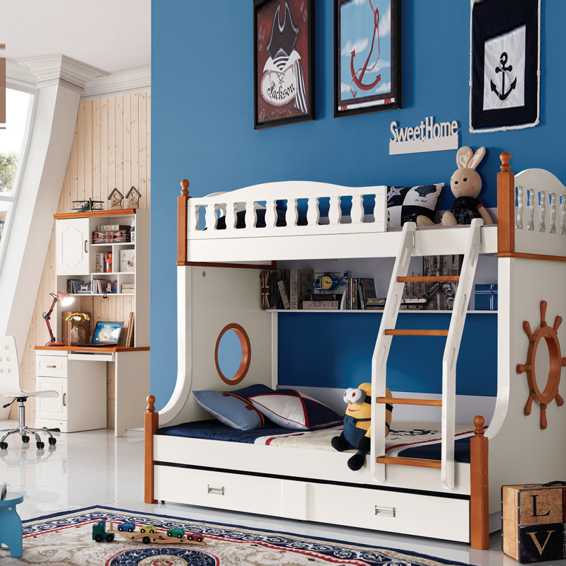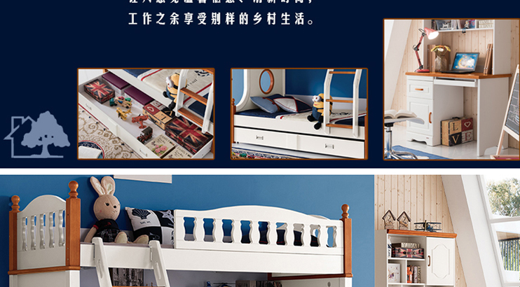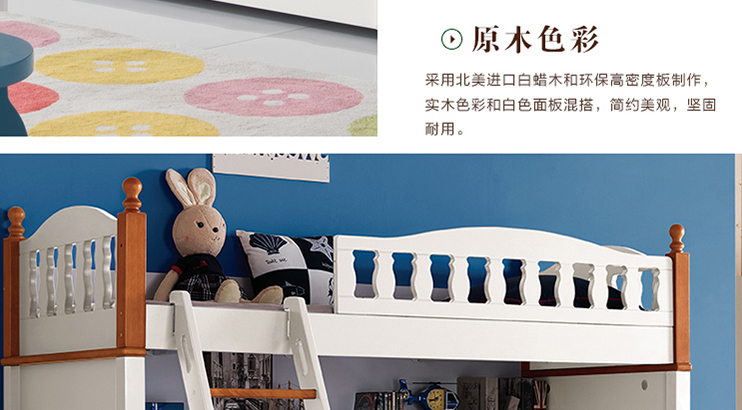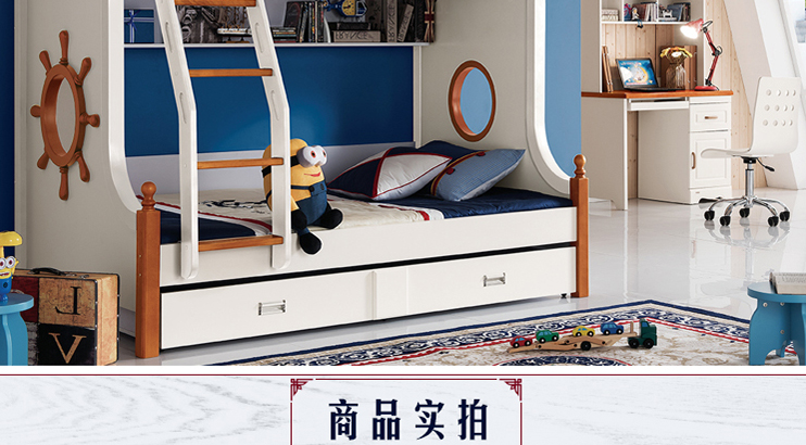 至美乡村实木田园风格白蜡木1.2米1.5米带拖斗储物儿童床K27