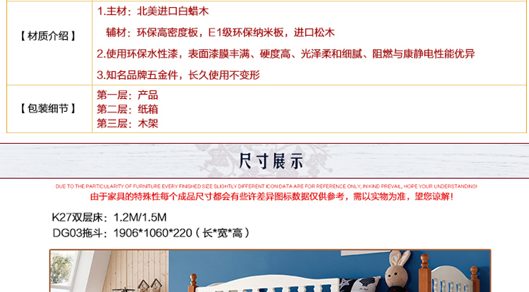 外围尺寸:K27双层床1.2m/1.5m; DG03拖斗1906*1060*220;