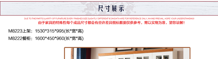 外围尺寸:M8222餐柜1600*450*960; M8223上架1530*315*995