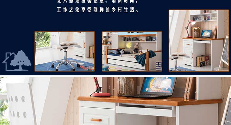 至美乡村书桌田园风格直角书台实木电脑台书椅组合H8301书台