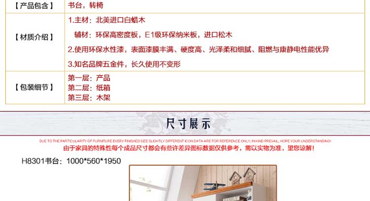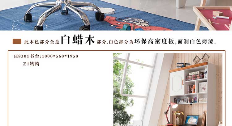 外围尺寸:H8301书台1000*560*1950; Z1转椅
