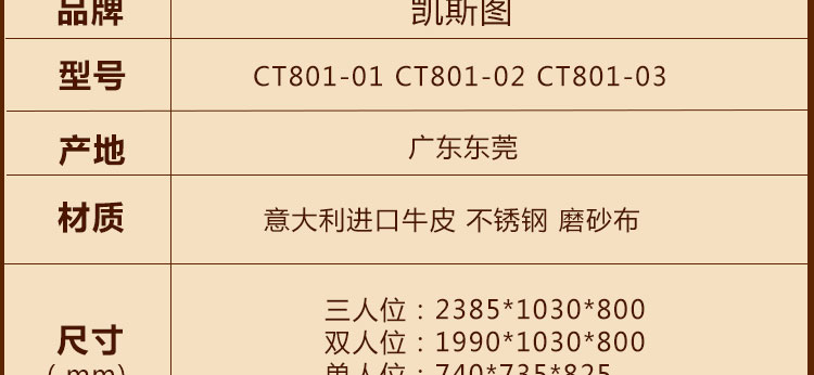 凯斯图 真皮沙发 现代简约沙发 真皮1人2人三人位高档客厅沙发组合CT801-01CT801-02C
