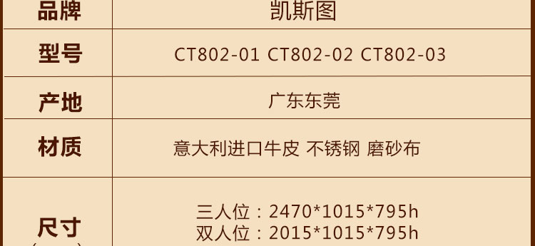 凯斯图 真皮沙发进口头层牛皮简约现代客厅沙发组合皮艺沙发 CT802-01 CT802-02 CT8