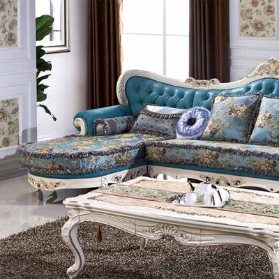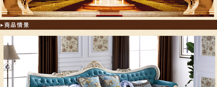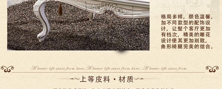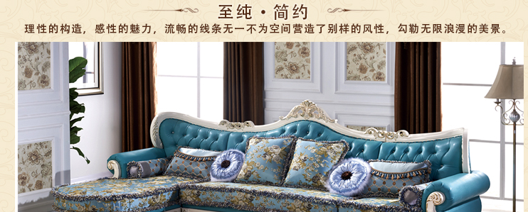 美林印象 欧式精美雕花贵族风范高档面料皮布结合转角沙发a63