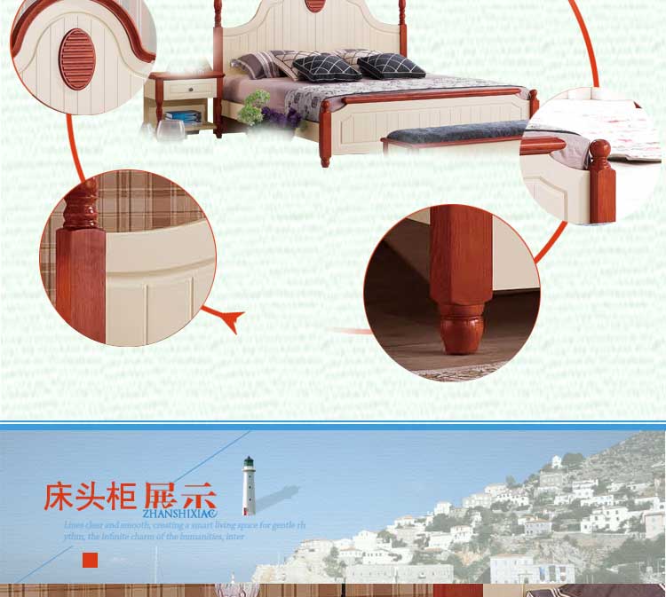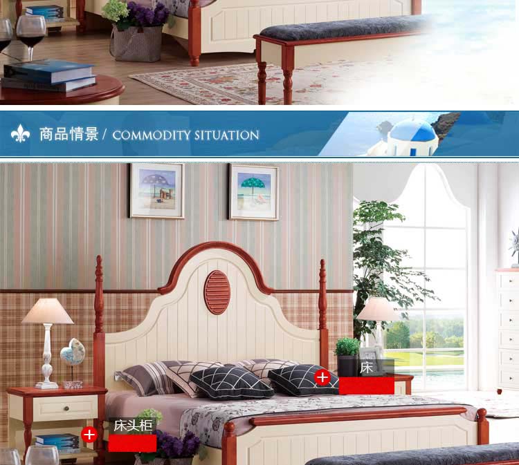 加州庄园 地中海风格床实木1.8双人婚床白色公主床 1101