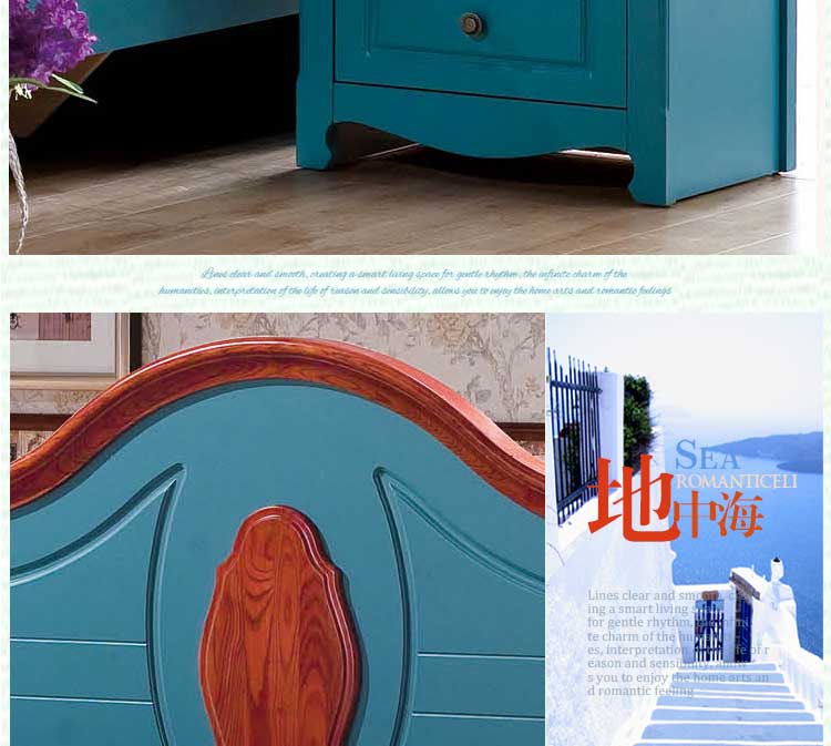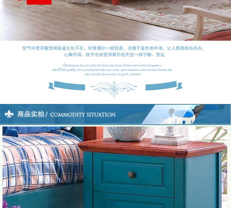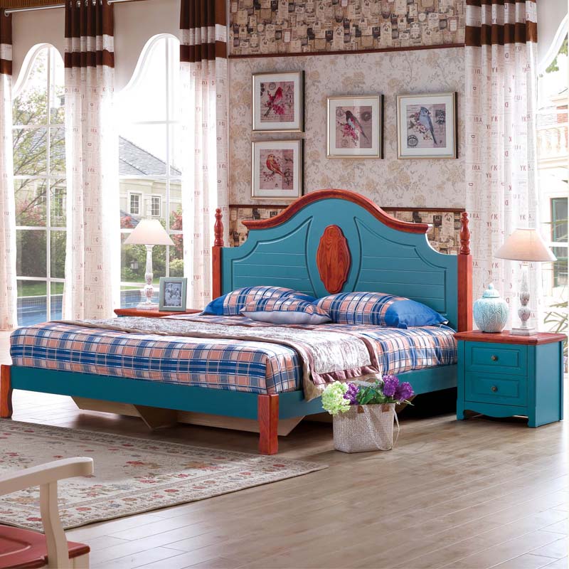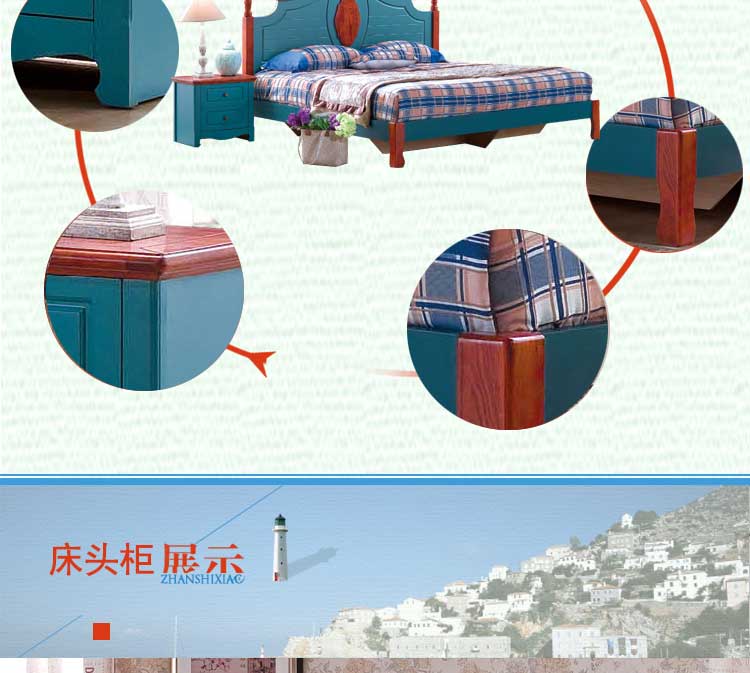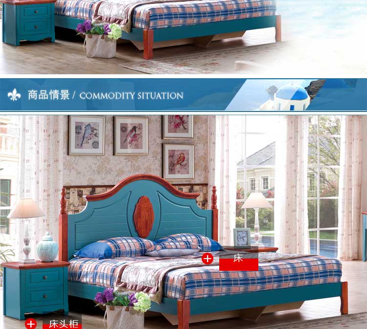加州庄园 乡村地中海床实木床、床头柜 地中海风格实木家具 1106