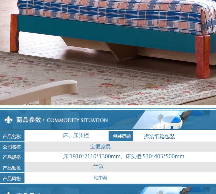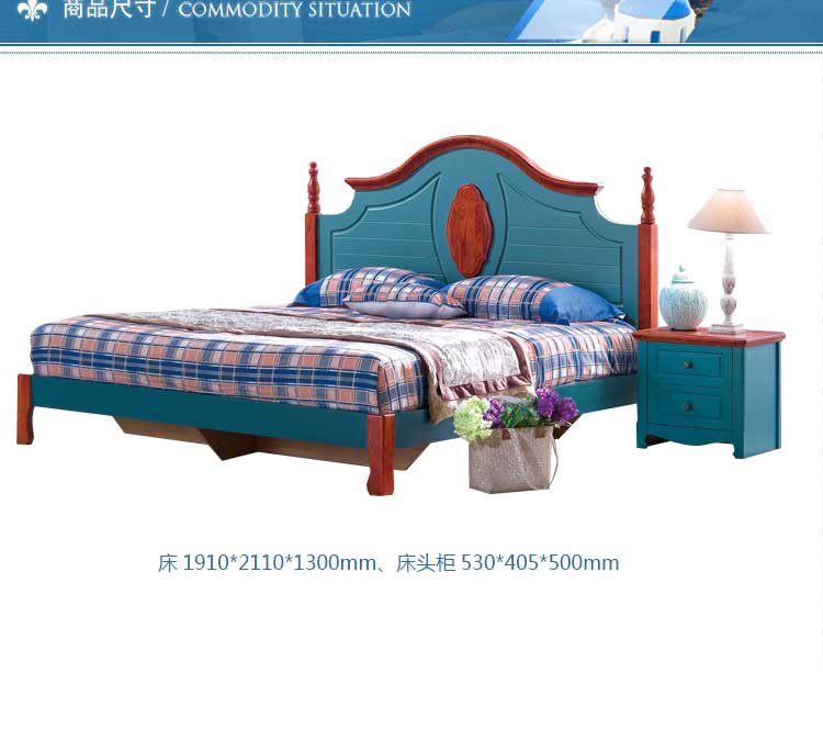 型号: 1106床 兰 规格:1910*2110*1300 型号:1202床头柜 规格: 530*405*500