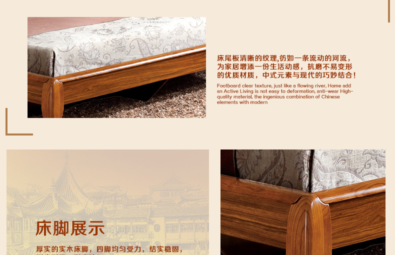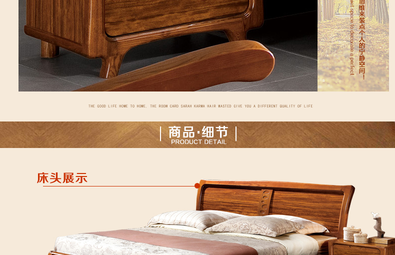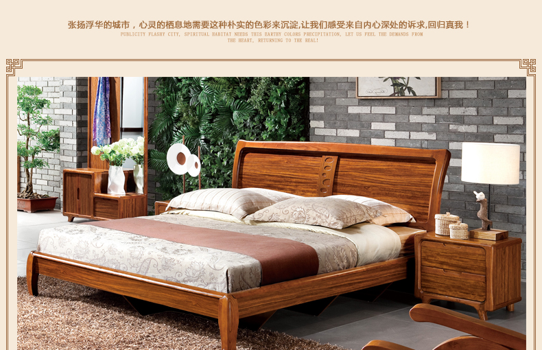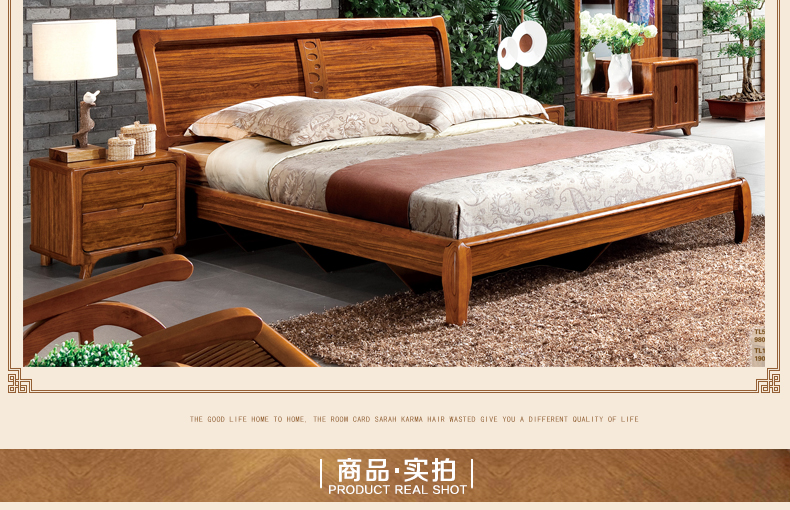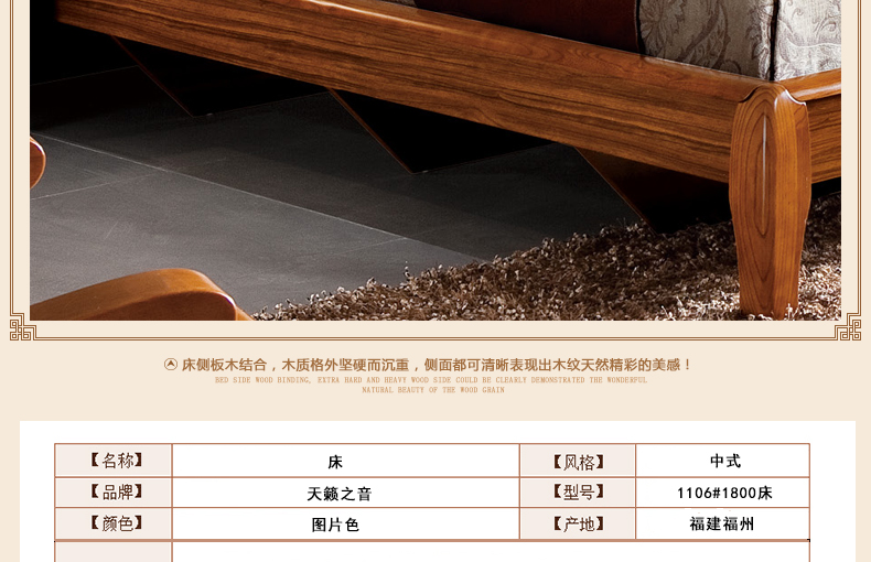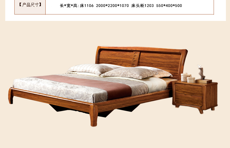 天籁之音 中式简约型新款实木床白腊木百搭床双人床床头柜1106#1800床