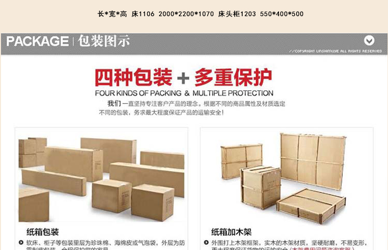 外围尺寸(长*宽*高):床2000*2200*1070 床头柜550*400*500
