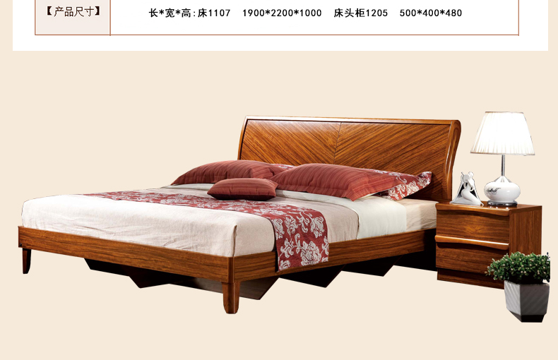 外围尺寸(长*宽*高):床1107 1900*2200*1000 床头柜1205 500*400*480