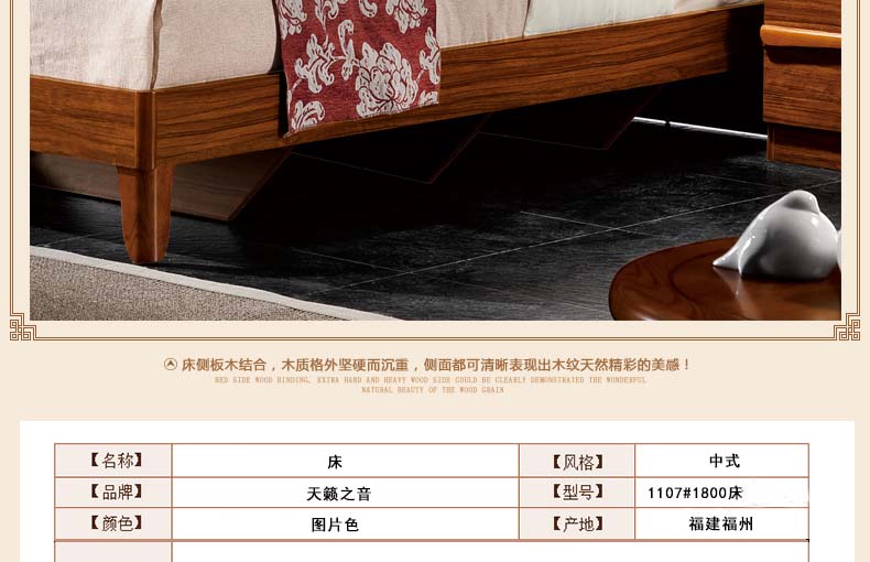 天籁之音 中式简约型新款实木床白腊木百搭床双人床床头柜1107#1800床