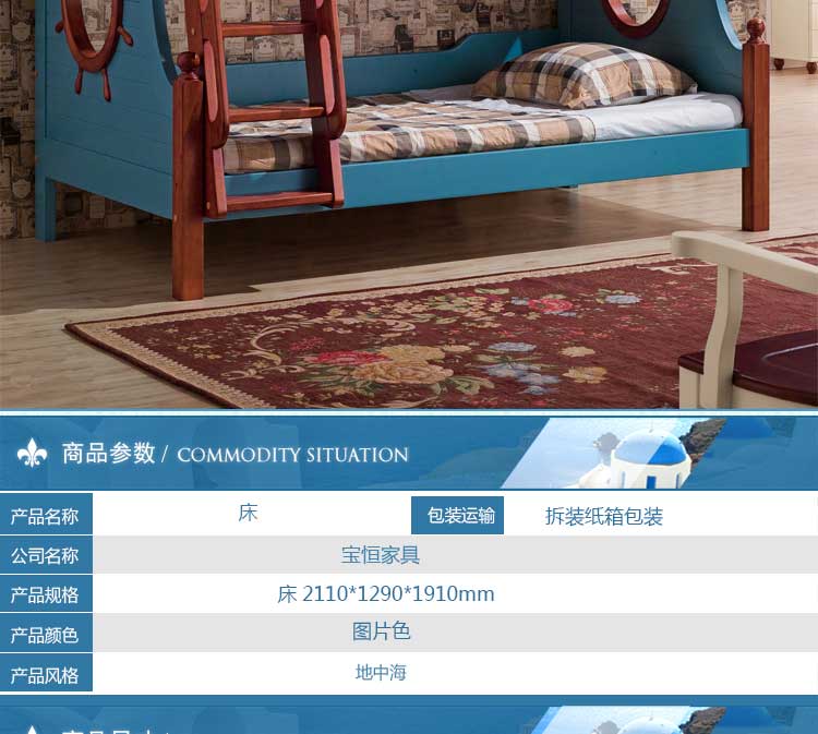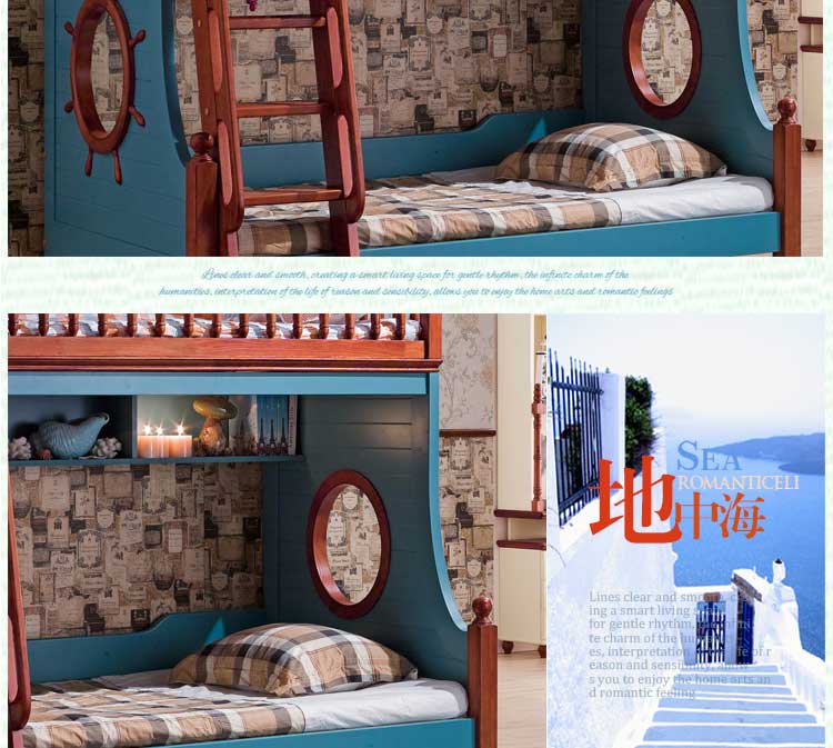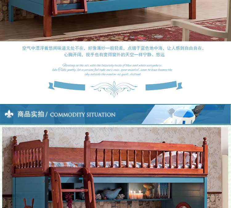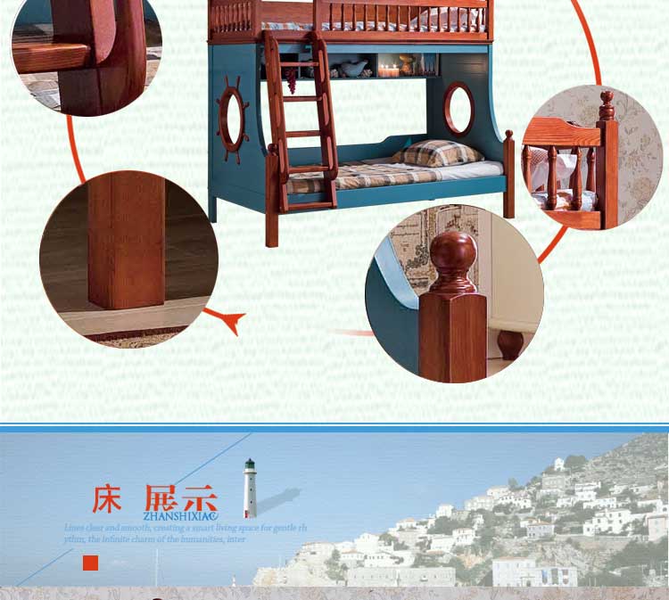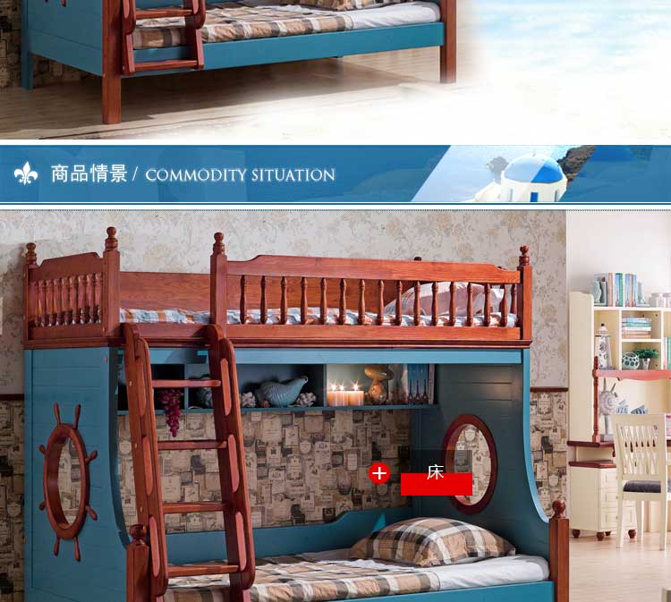 加州庄园 儿童床高低床地中海风格实木上下组合子母床卧室双层床1110