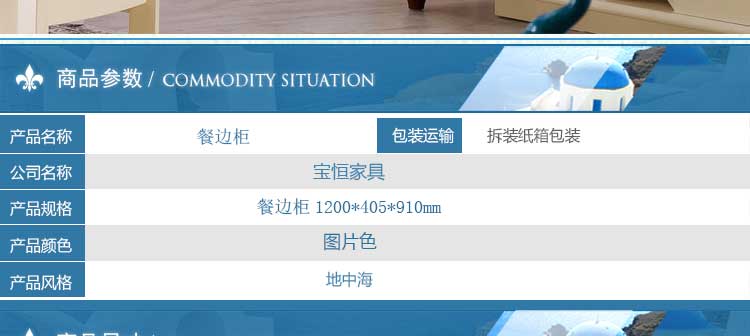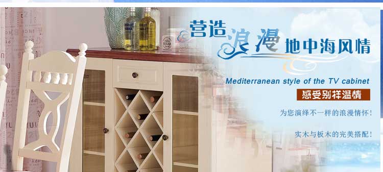 加州庄园 地中海餐边柜实木酒柜现代厨房碗柜储物柜田园茶水柜JZ0102餐边柜