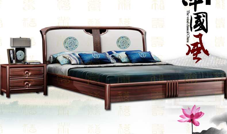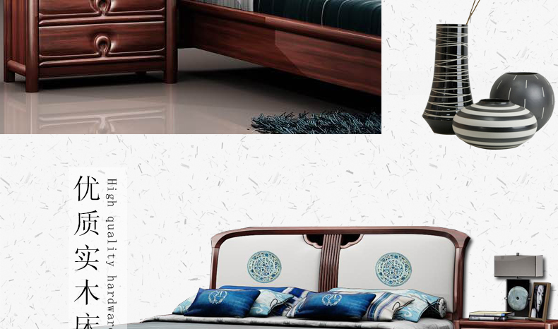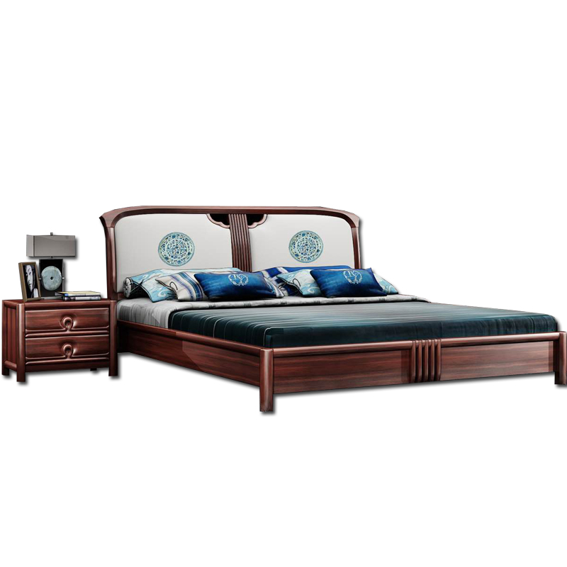 尚木一品卧室舒适大床胡桃色经典仿古实用双人床高品质大床YP-W1001