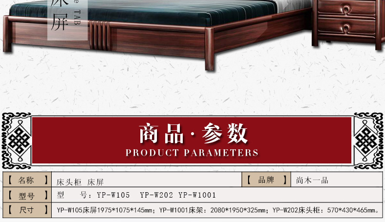 外围尺寸: YP-W105床屏:1975*1075*145mm; YP-W1001床架:2080*1950*325mm; YP-W1002气动高箱:2080*1950*425mm; YP-W202床头柜:570*430*465mm。