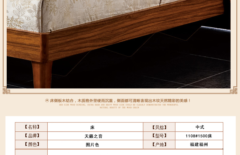 天籁之音 厂家直销中式简约型新款实木床白腊木百搭床双人床1108#1500床