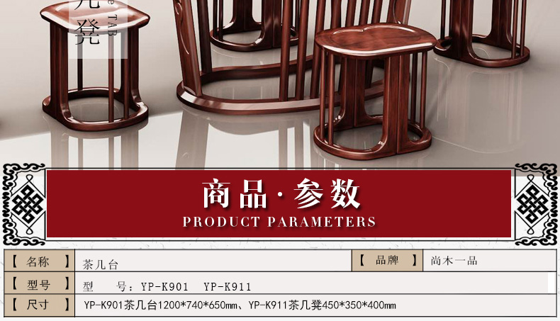 尚木一品系列经典茶几客厅中式风格胡桃色系列茶几YP-K901