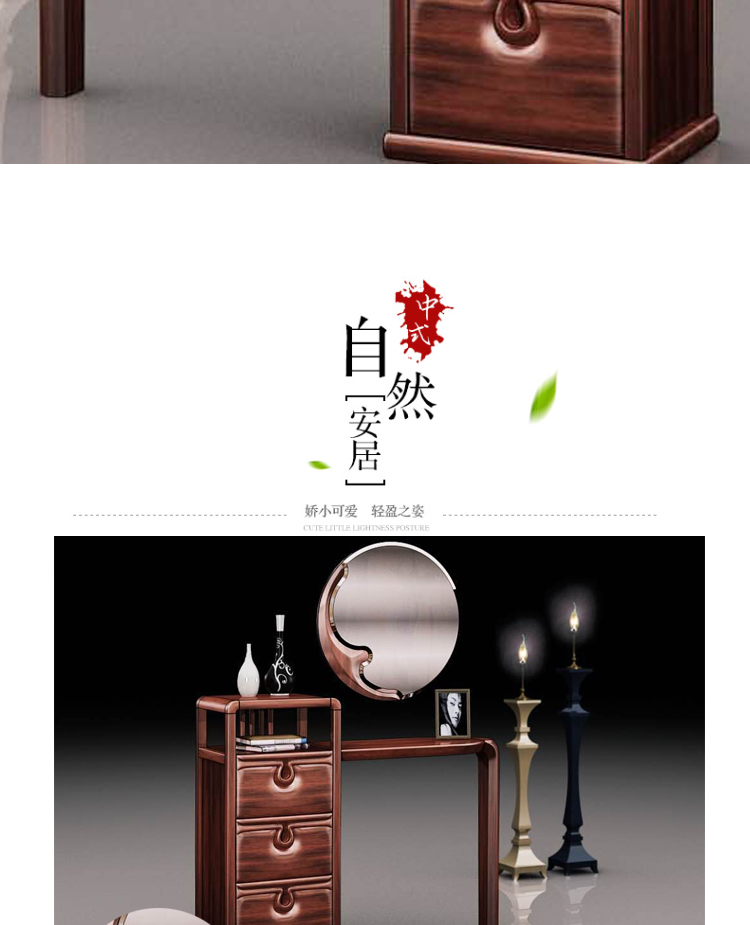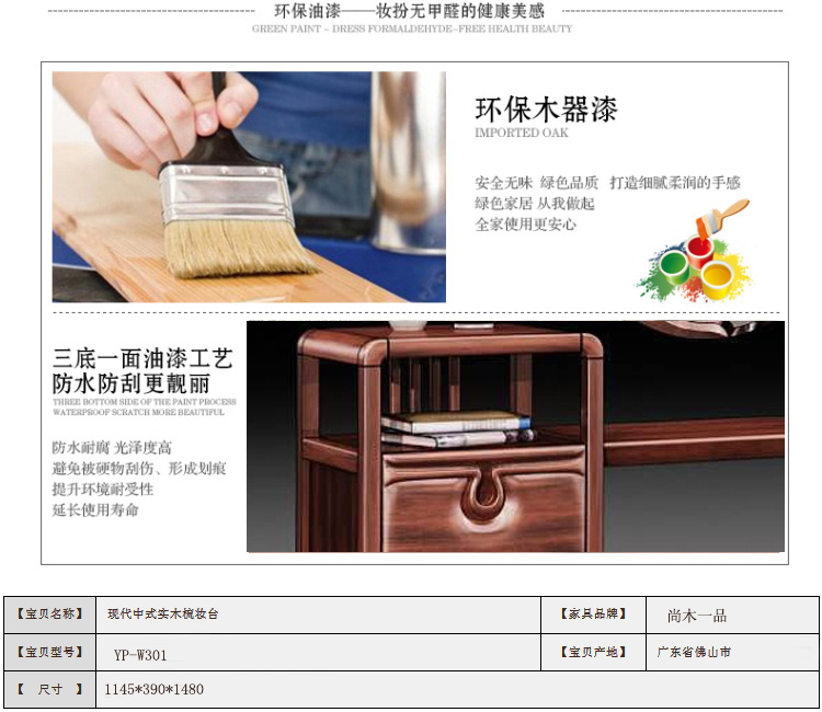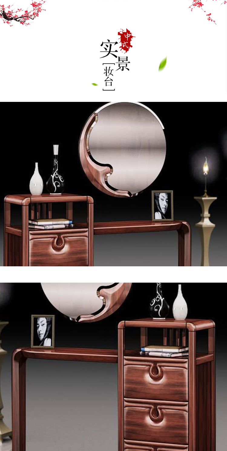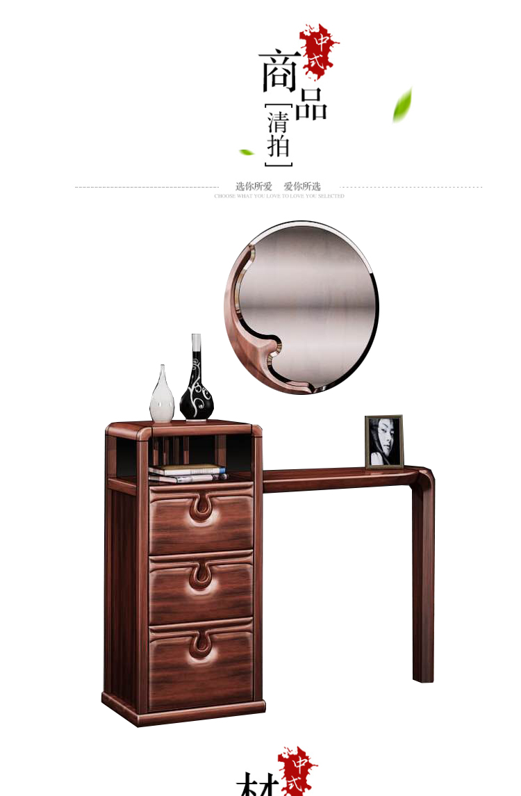 尚木一品卧室仿古储物妆台胡桃色中式风格经典妆台YP-W301