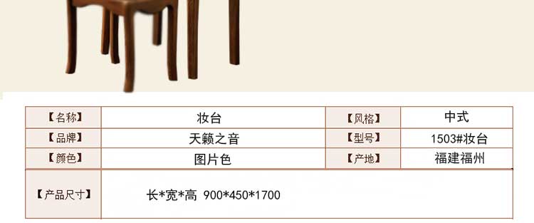 天籁之音 厂家直销中式新款实木妆台百搭妆台白腊木妆台1503#妆台