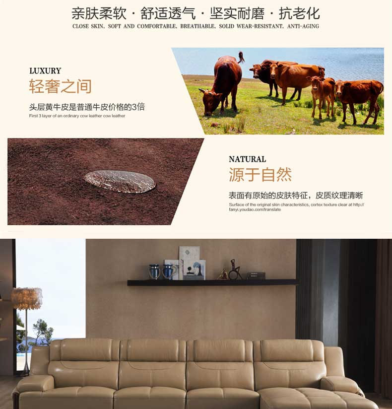 艾格妮斯 厂家直销 客厅沙发组合进口黄牛皮皮艺沙发家居9838沙发