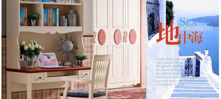 加州庄园 地中海实木书桌书架组合儿童学习桌电脑桌JZ5001书桌JZ3301书椅