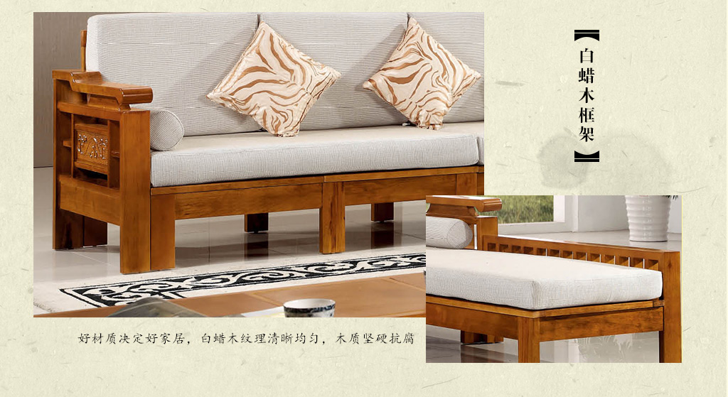 卓木源实木系列实木沙发 现代中式实木沙发组合Zk306