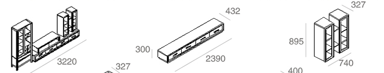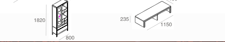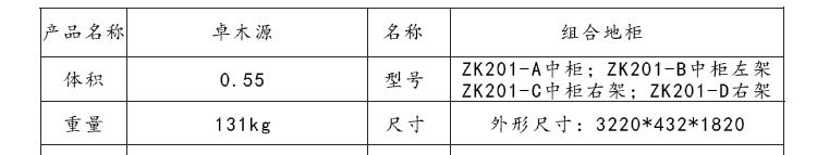 外围尺寸:3220*432*1820 ZK201-A中柜2390*432*300; ZK201-B中柜左架1150*400*235; ZK201-C中柜右架740*327*895; ZK201-D左柜800*327*1820