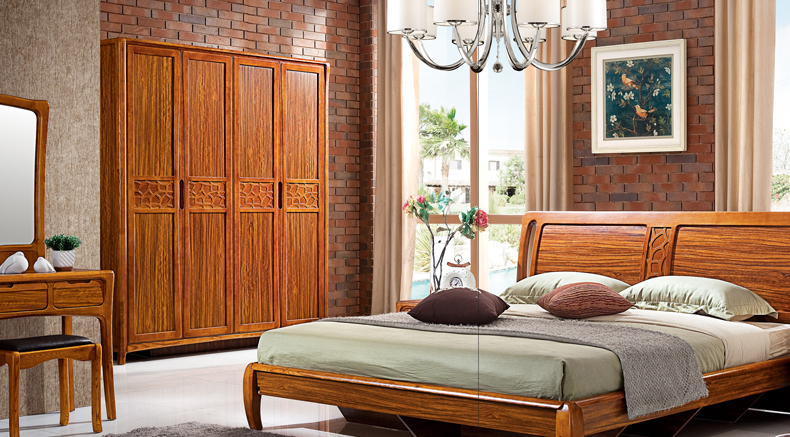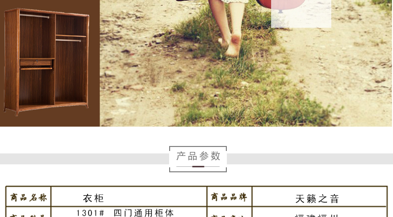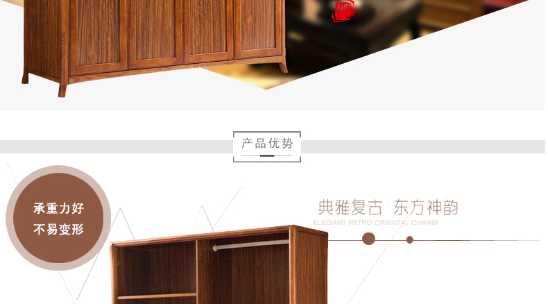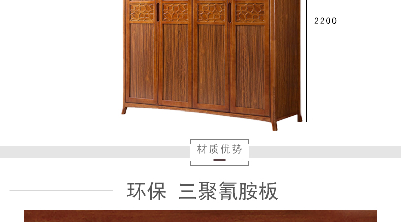 天籁之音衣柜实木简易衣橱中式组合木质衣柜四门大衣柜1301#