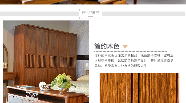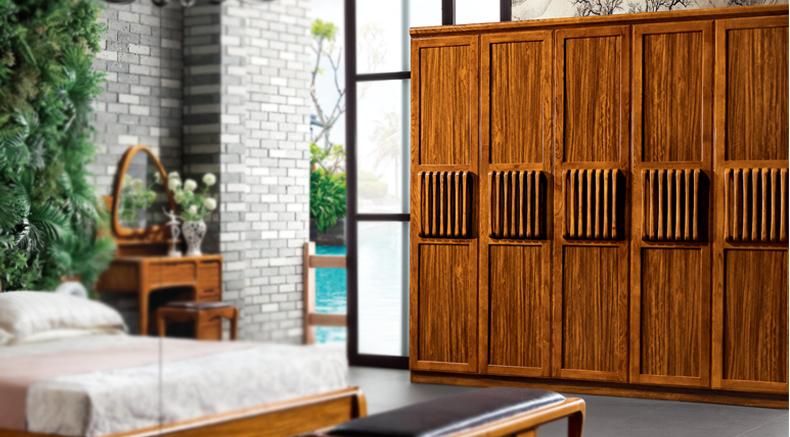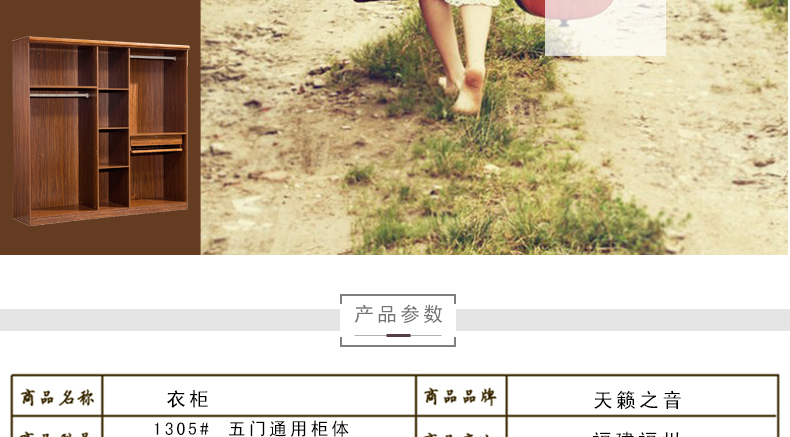 天籁之音衣柜简易衣橱中式组合木质衣柜五门大衣柜1305#