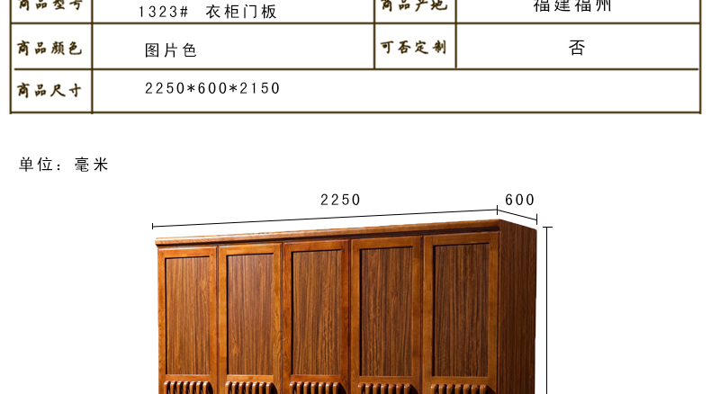 款式:1305#五门通用柜体+1323#衣柜门板  门数量:5门