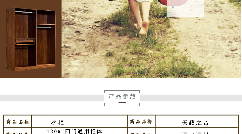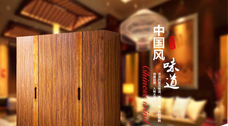 天籁之音衣柜简易衣橱中式组合木质衣柜四门大衣柜1306#