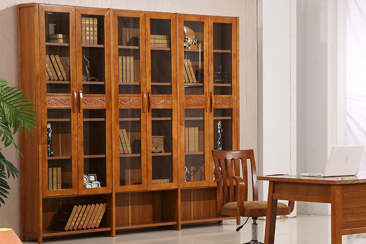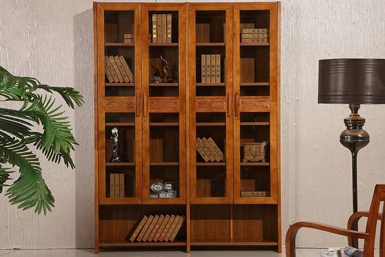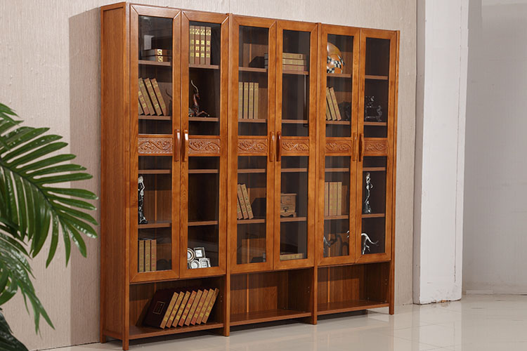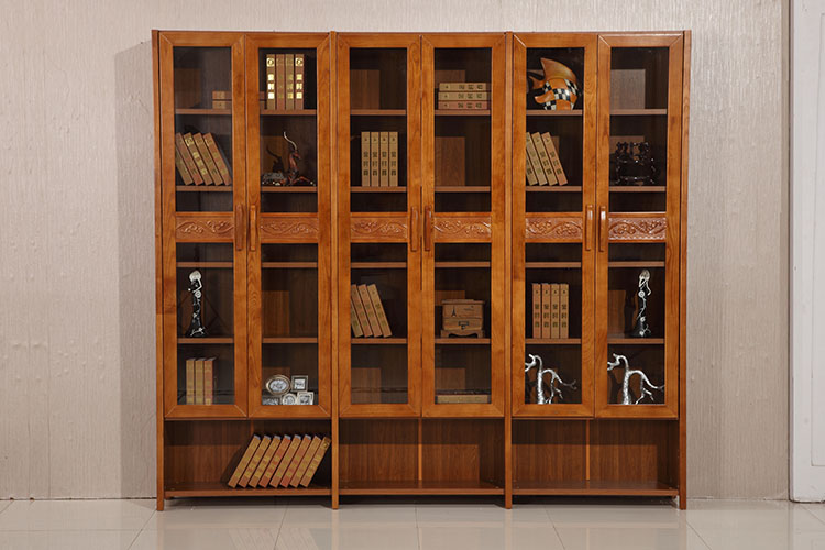 卓木源实木六门组合书柜 现代中式书房书柜组合ZS102六门书柜