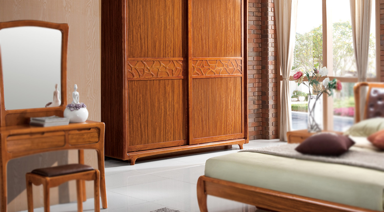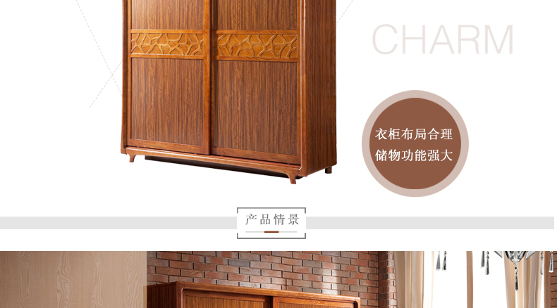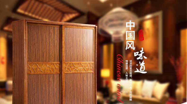 天籁之音衣柜简易衣橱中式组合木质衣柜推门衣柜大衣柜1308#
