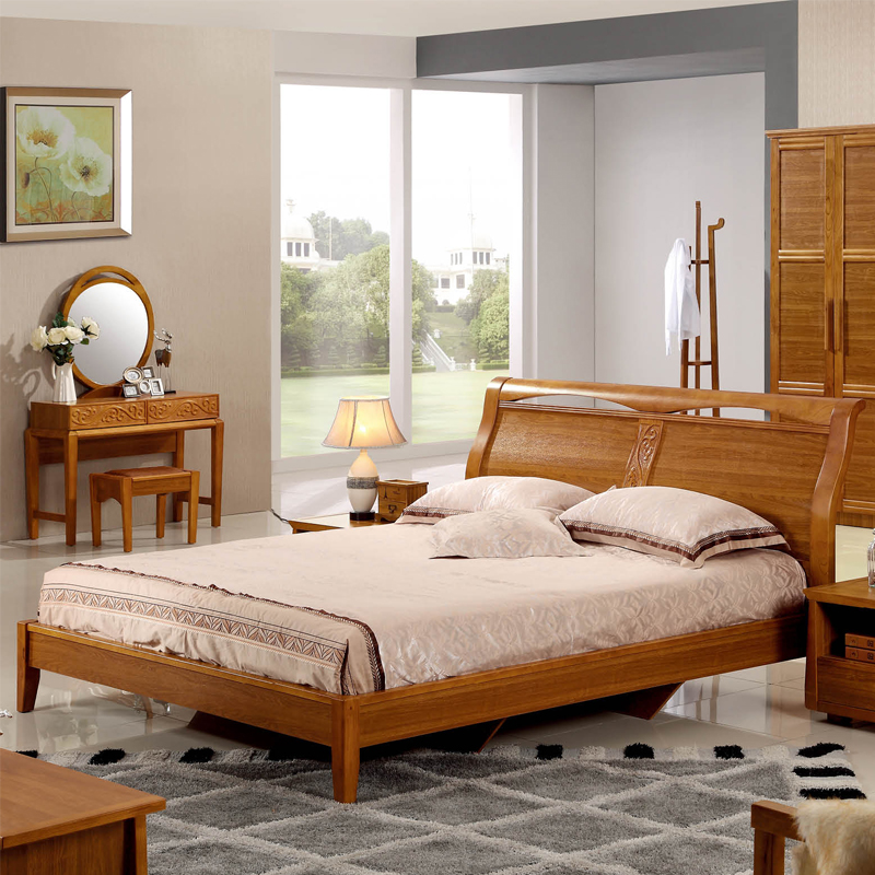 卓木源ZW109现代中式全实木白腊木双人床1.8米 简约卧室婚床实木床家具组合ZW109