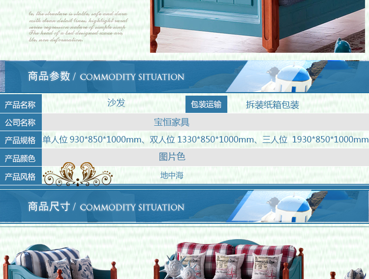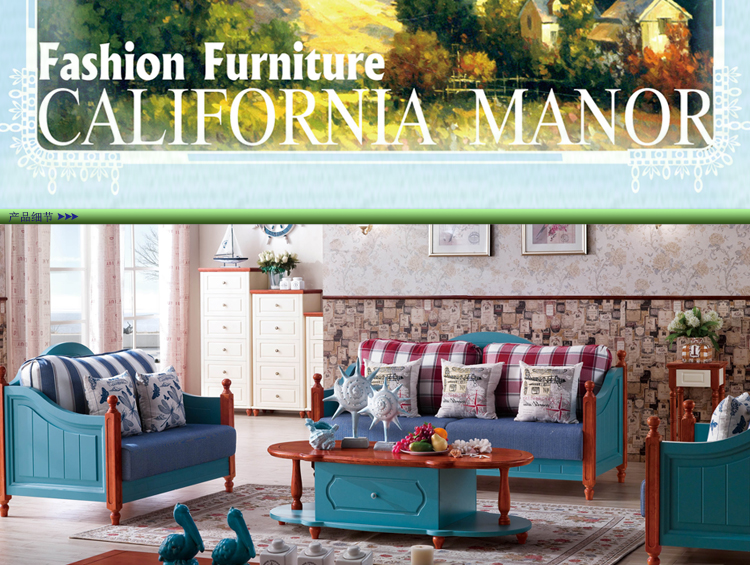 加州庄园 地中海 沙发 客厅田园布艺组合沙发 2203