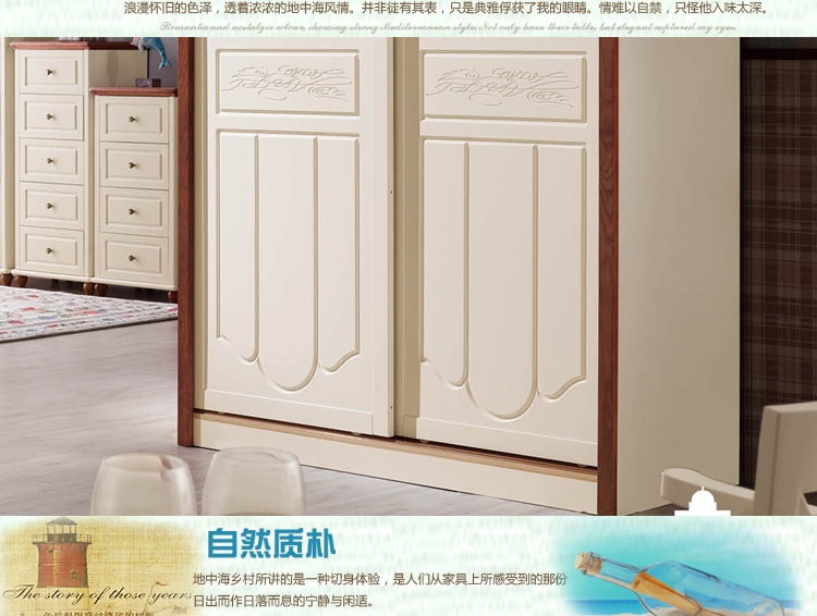 加州庄园 地中海衣柜成人衣柜地中海白色卧室衣柜1307 推门衣柜