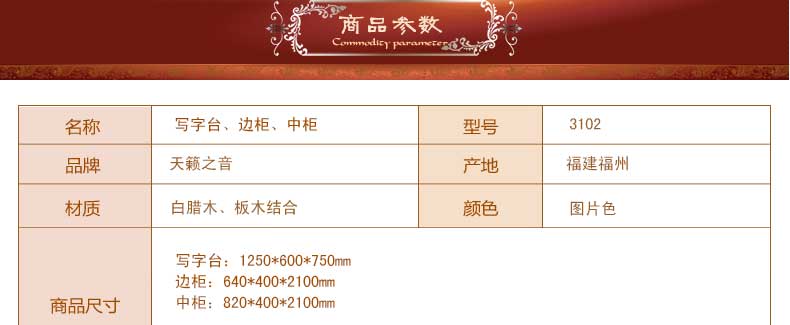 天籁之音 中式实木书桌台式电脑桌写字台简约办公桌3102写字台3102边柜3102中柜