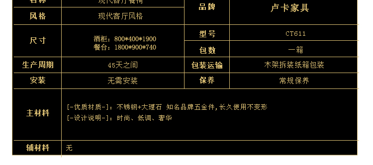卢卡家具不锈钢系列餐台 酒柜 现代简约风格大理石台面餐台CT611