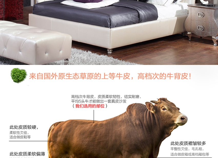 皮床质量很好,是真皮的,买回来放在我的房间很好看,高大上的感觉,值得购买!!!