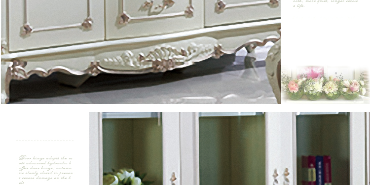 【经典系列】浪漫经典欧式风,精美雕花,环保板材,大宝油漆。 加厚板材,更有份量,精美雕花,立体感强,工艺考究,抽屉增加红色绒布,不仅可以保护抽屉底板,而且更高档贵气