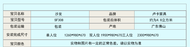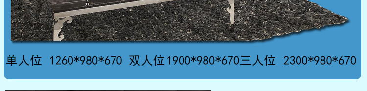 外围尺寸:单人位 1260*980*670 ; 双人位 1900*980*670; 三人位 2300*980*670