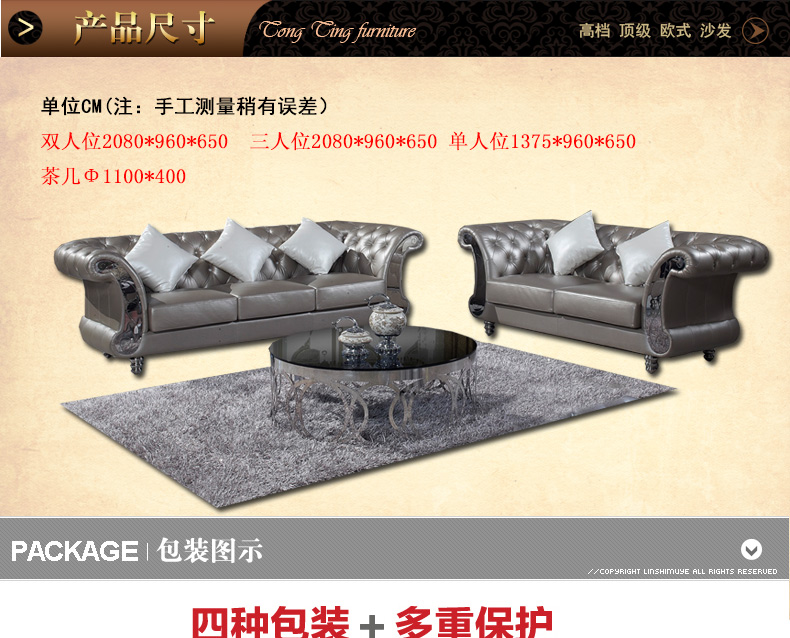 采用金属框架,经久耐用,表面材质多样可选,简约现代设计,奢华大气